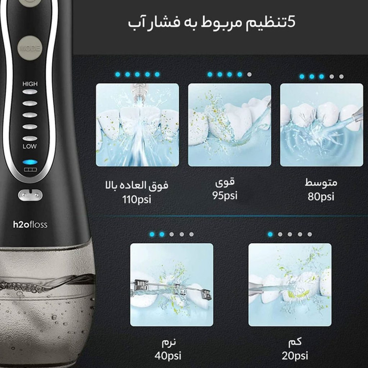 دستگاه شست‌وشوی دهان و دندان H2Floss مدل HF‑8 | ۸ سری کاربردی از جمله ۲ سری مسواک + فشار قابل تنظیم